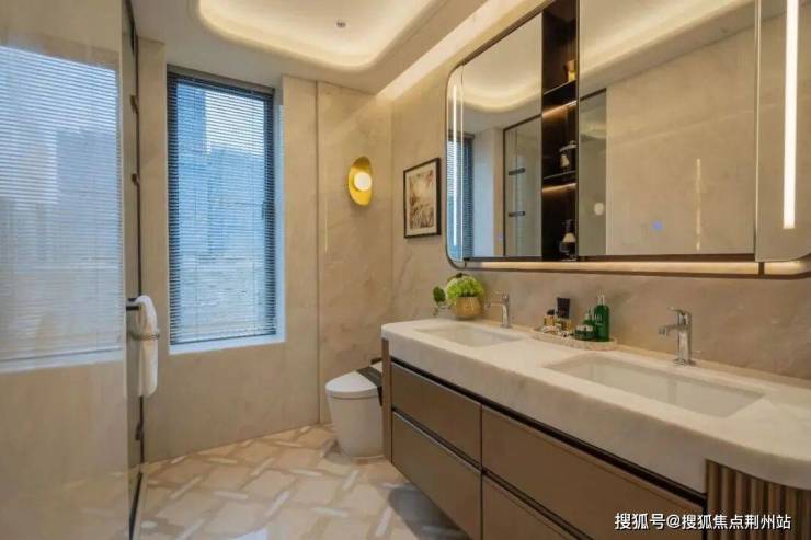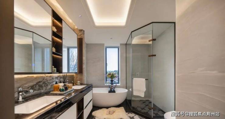 主卧带独立衣帽间+双台盆主卫,主卫同时配备浴缸和淋浴区,还带窗户,做到了真正的干湿分离,隐私性和舒适度拉满,是豪宅级别的主卧配置。