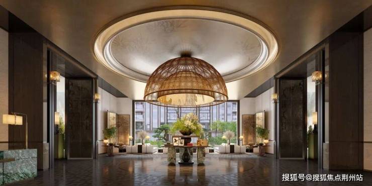 整个门厅设计不仅采用了酒店落客式设计,以现代用材匠心打造了东方对称式礼仪门厅,简约大气!更是在门厅中心,特地邀请非遗大师重金打造了一个大型盆景——玉台迎松,视觉震撼效果一流!