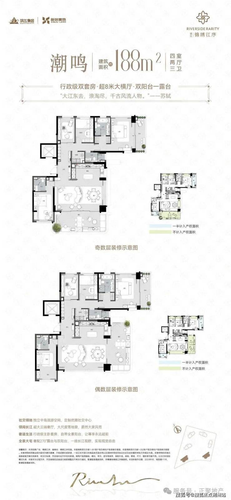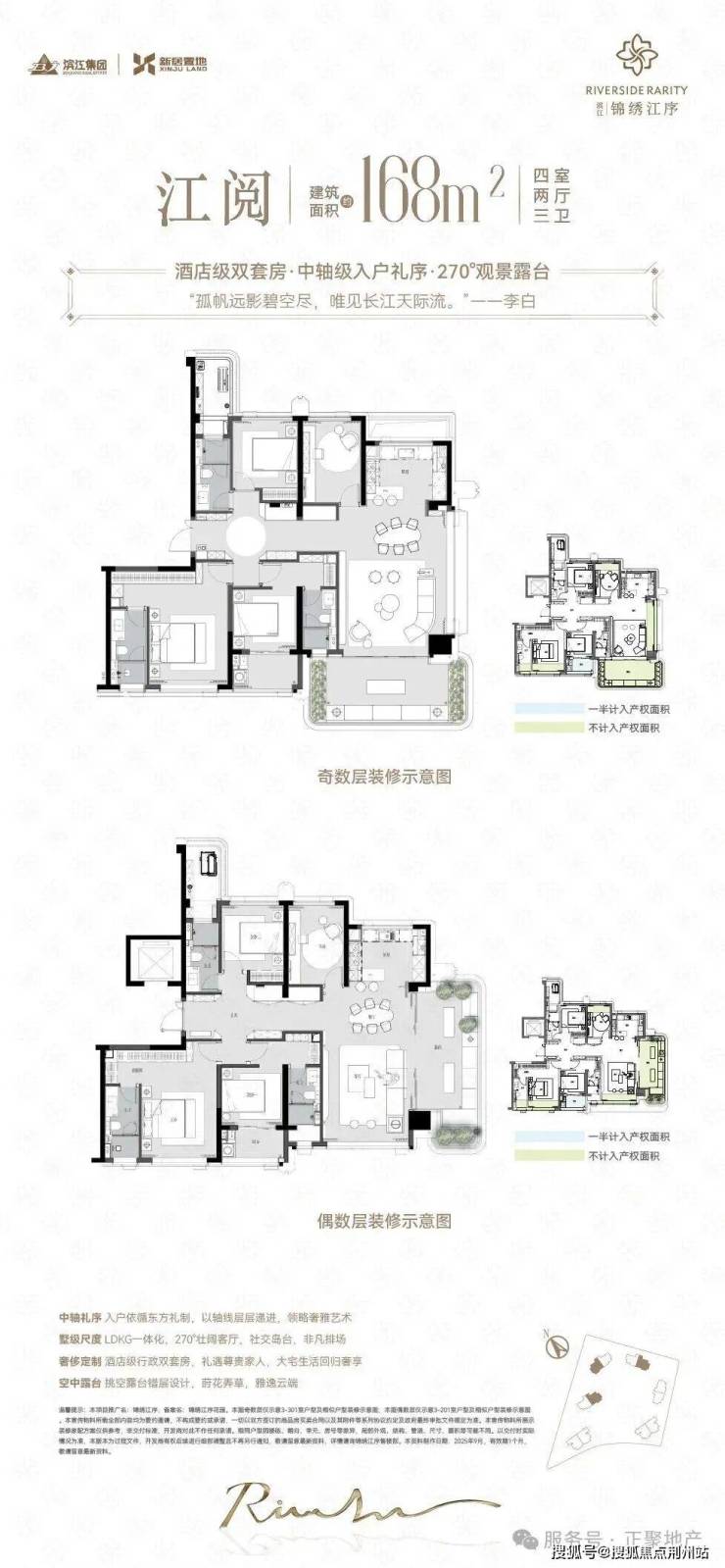 【户型面积】约140-168-188㎡瞰江平层