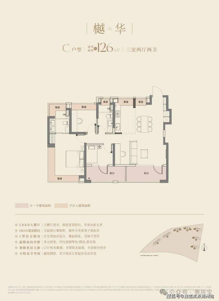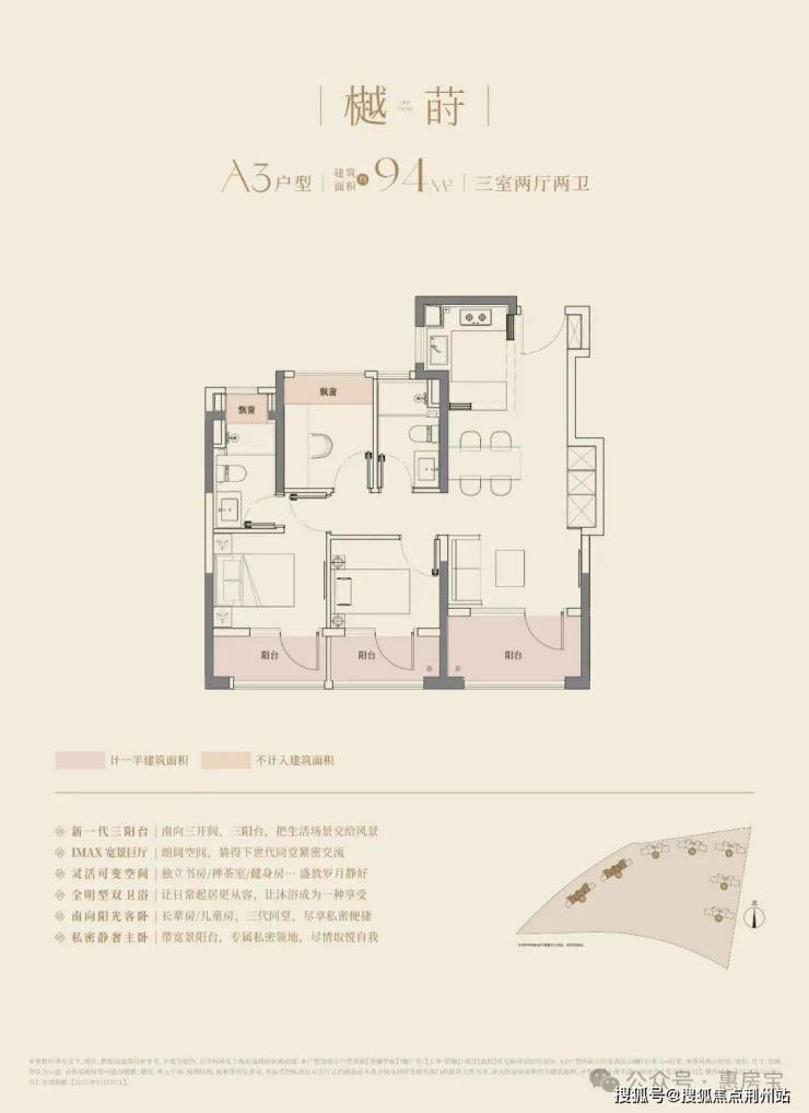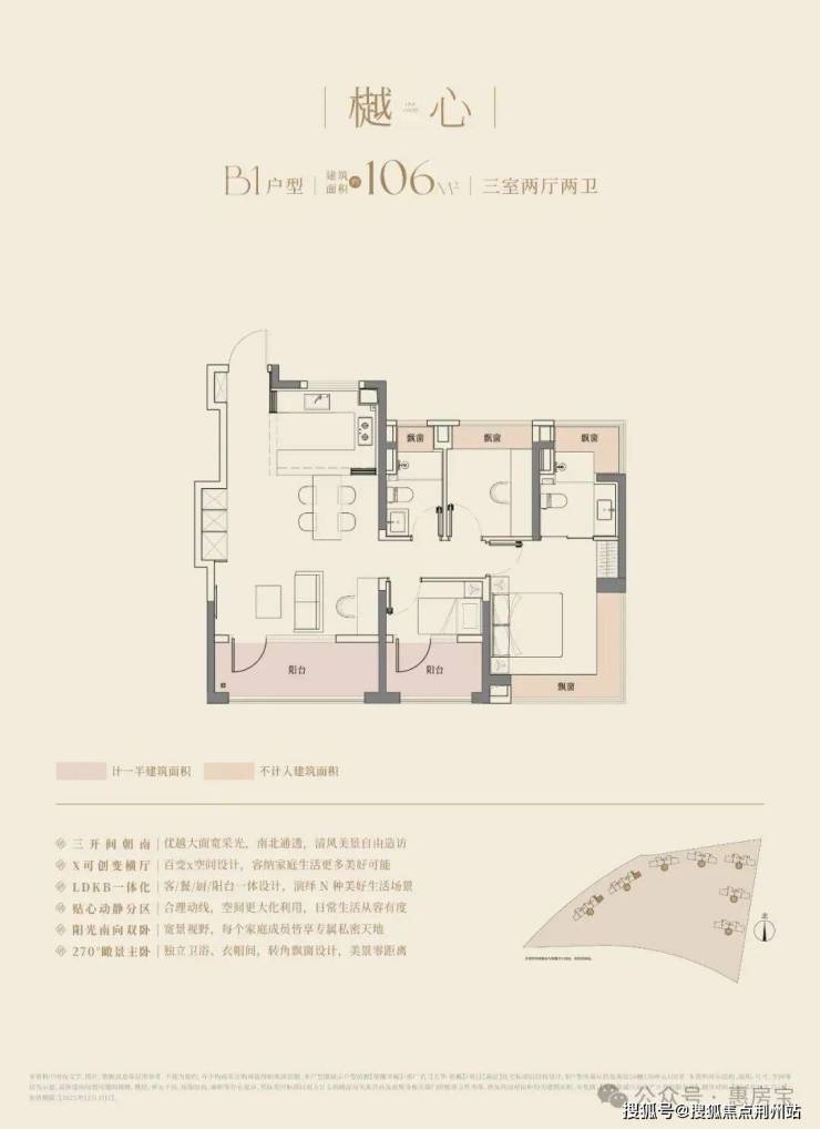 经典动静分离户型,预留分户“S”墙设计,三开间朝南+双阳台,阳台合仅计算一半建筑面积,主卧以及主卫附赠270°转角飘窗;