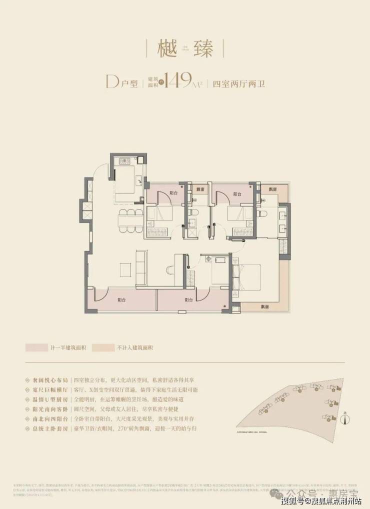 经典动静分离户型,4.5开间朝南+南北四阳台,阳合仅计算一半建筑面积,主卧以及主卫附赠270°转角飘窗;
