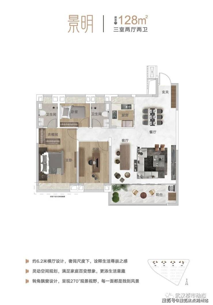 高层建面约128㎡的产品,亮点也颇多。