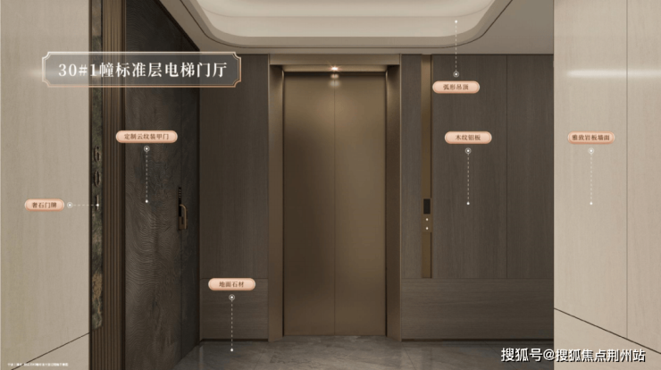 • 高定归家车坡道:车库入口地面为加厚石材,墙面使用大规格岩板及金属墙裙,顶面定制中式天花,随着车辆缓缓使用,线型灯光依次打开,每一刻都迎接业主归家。