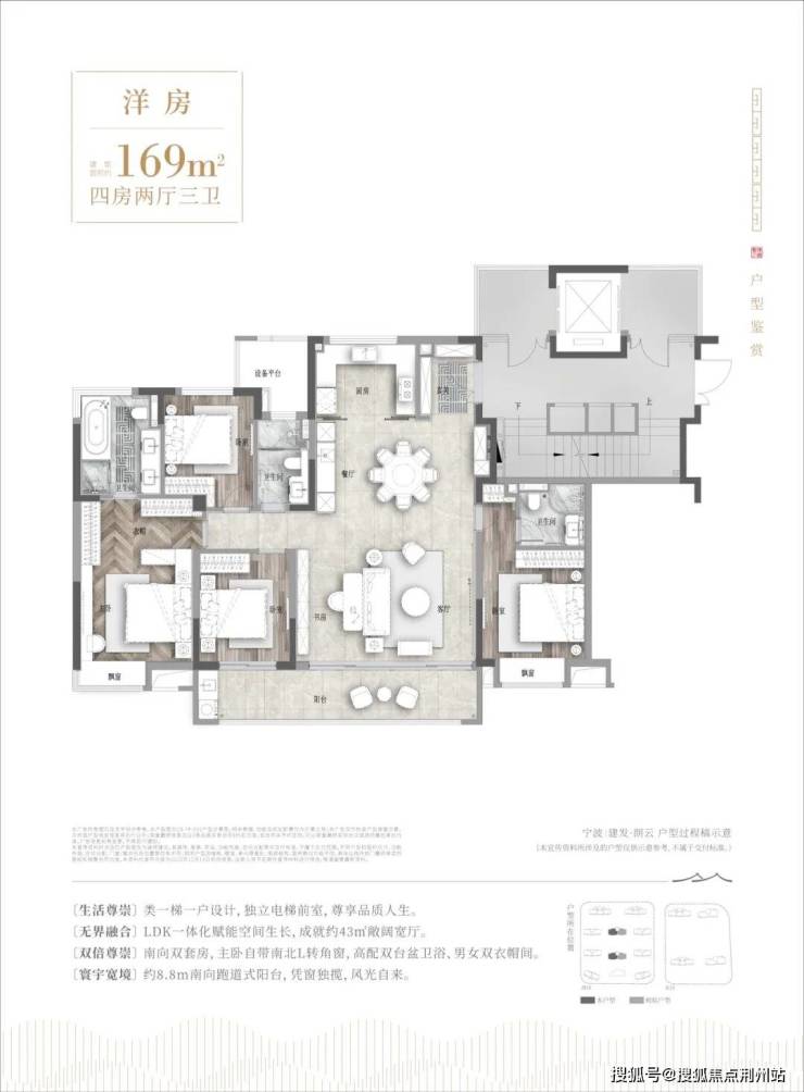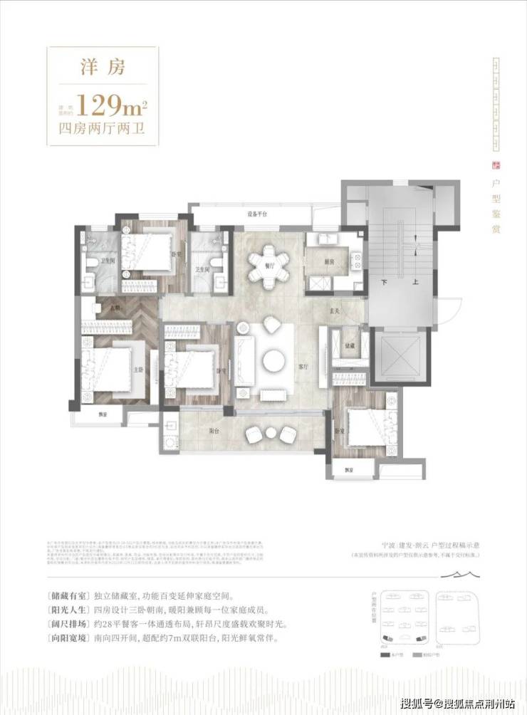 洋房129户型:四开间朝南、独立储藏、可放圆桌、正四房