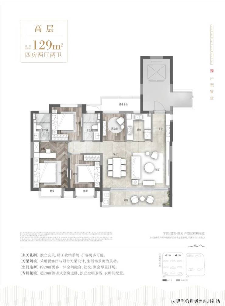 高层129户型:餐客厅与阳台无梁设计、超大餐客厅、动静分区、无暗间