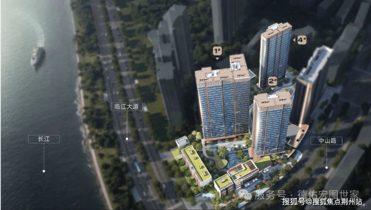 其中1号楼只有1个单元斜对着看江,1、2号楼部分看江,中高区西边套户型能做到正面看江和270°观江。
