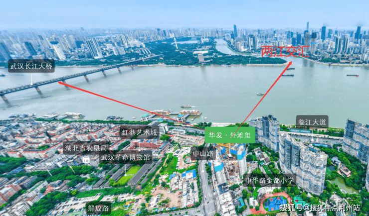 项目位于武昌区临江大道与中山路的交汇处,属于武昌内环。临近长江大桥、黄鹤楼等地标,江对面就是龟山电视塔,两江交汇之处,可以说占据了武汉江景最精彩之处。