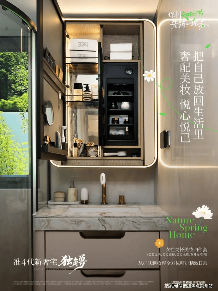 同时,更以「她享主义」,精配美妆4件套(美妆龙头、美妆镜柜、美妆冰箱、双补光照明),打造奢适有度的生活场景。