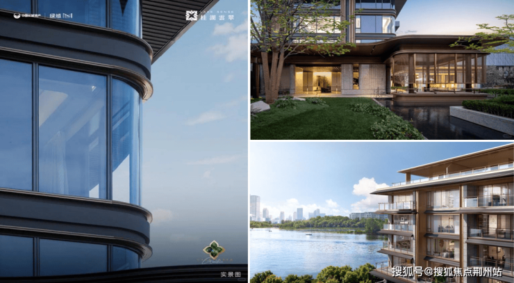 项目亮点:在建筑设计上融合现代简约风格与东方美学底蕴,外立面采用玻璃幕墙搭配浅色系铝板及仿石涂料,线条简洁流畅且富有层次感,既展现出当代高端住宅的精致质感与时尚气息,又通过局部的东方元素点缀,如建筑顶部的简约飞檐造型、社区入口的对称式设计等,与东湖的自然意境相呼应。建筑整体外观沉稳大气,兼具辨识度与品质感。