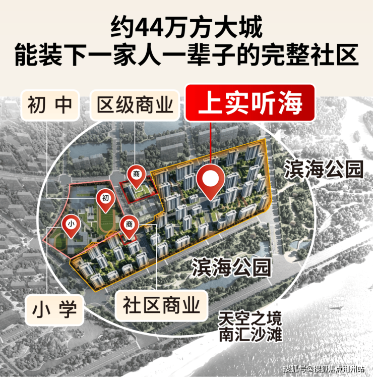 外部是103日渐成熟的城市配套,内部则是上实·听海这座约44万方“5+1”超级滨海生活大城。