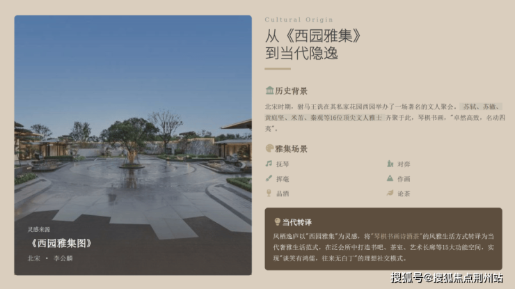 室内及会所设计由琚宾团队完成,约2500㎡的泛会所以北宋《西园雅集》为灵感,将“琴棋书画诗酒茶”的风雅生活方式转译为书吧、茶室、艺术长廊等15大功能空间,实现“谈笑有鸿儒”的社交理想。