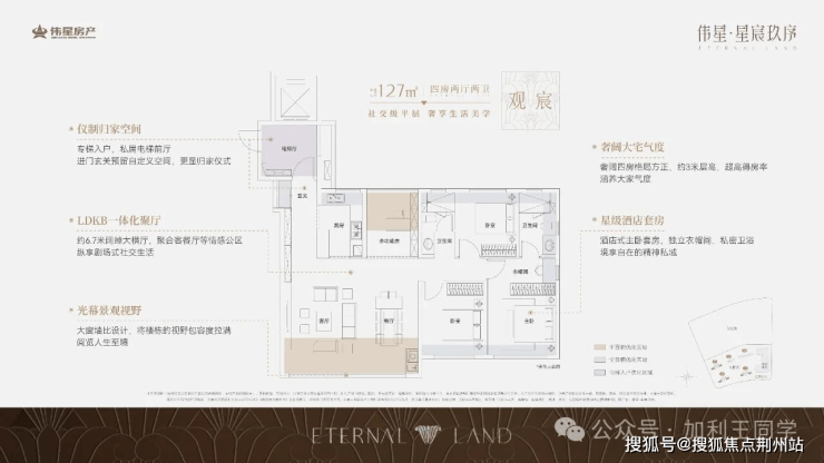 建面约127㎡实现独立电梯入户、南北通透、约6.7米横厅,功能齐全且实得面积堪比市面上160㎡以上产品,精准击中进阶型改善家庭核心诉求;
