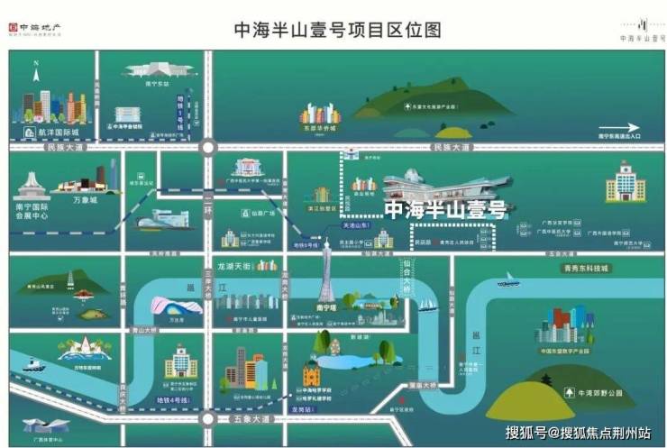 项目矗立于全国百强区-青秀区东部,享受强首府战略下的发展红利。民族大道、仙葫大道等路网环环相扣,万象、五象东等商圈层层辐射,繁华俯身既是,宁静转身即来。