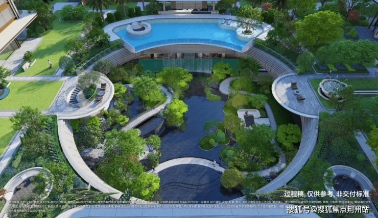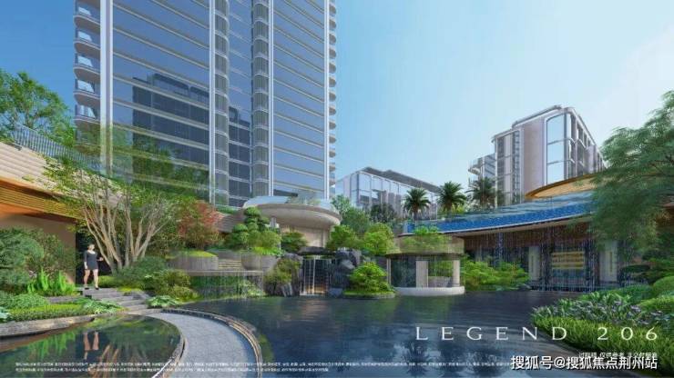 约1460㎡下沉庭院——翡翠之环,作为滨杭传麒府的中央景观,灵感取自新加坡金沙酒店的无边际悬浮泳池。层叠水幕自台地倾泻,如天河垂落,其灵感源于“全球最美机场”之称的新加坡樟宜机场。