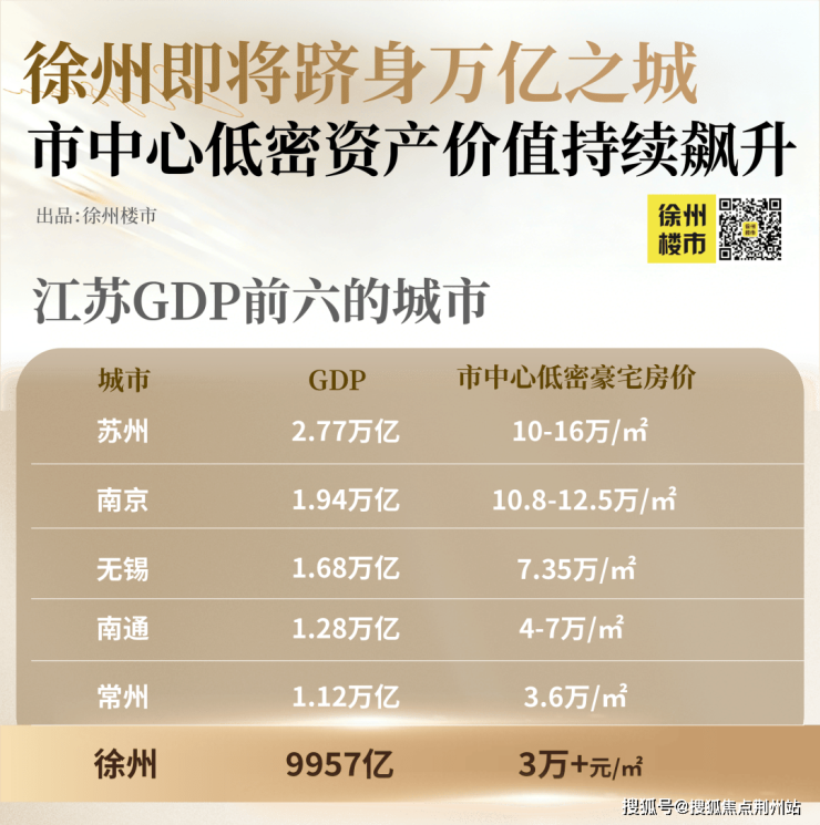 更何况,今年徐州即将迈入GDP万亿俱乐部,市中心的低密产品价值,还会继续拔升。毕竟,对比江苏其他万亿城市的市中心低密产品,徐州资产价格还是处于低位。