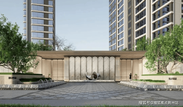 社区入口:昭示性景墙和定制级迎宾水景,构筑尊崇排场。