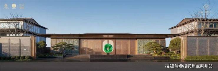 刚走到大门,一座超40米的恢宏大门会出现在你的眼前。整个门楣的中央,是圆润而对称的团扇门,它优美的轮廓造型给足了第一层归家的仪式感,更传递了团圆美满的生活寓意。团扇门的前方,静静伫立着如佩环状的玉石雕塑,谦谦君子,君子如玉,在潺潺水流的陪衬下,整个画面更添灵动性。