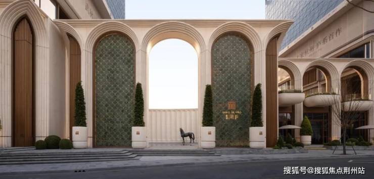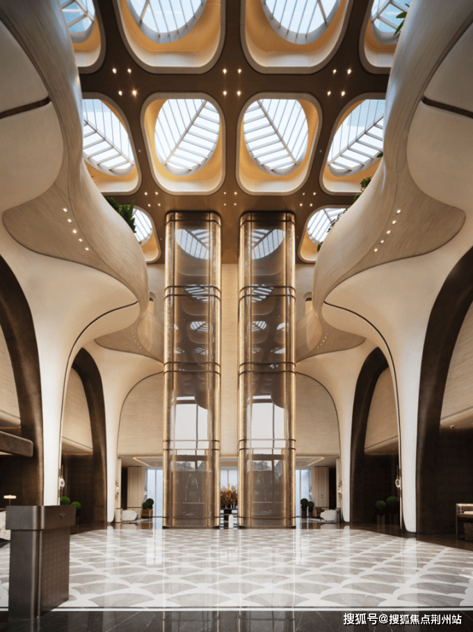 项目大门造型相当独特,与其他竞品项目都不一样,设计感十足,令人过目难忘。高达18米的宏伟气势与宽敞的入口,搭配大量曲线元素,尽显美感与质感,内部也同样延续曲线设计,统一的设计语言,营造出奢华度假酒店的舒适氛围,整体效果挺好的。