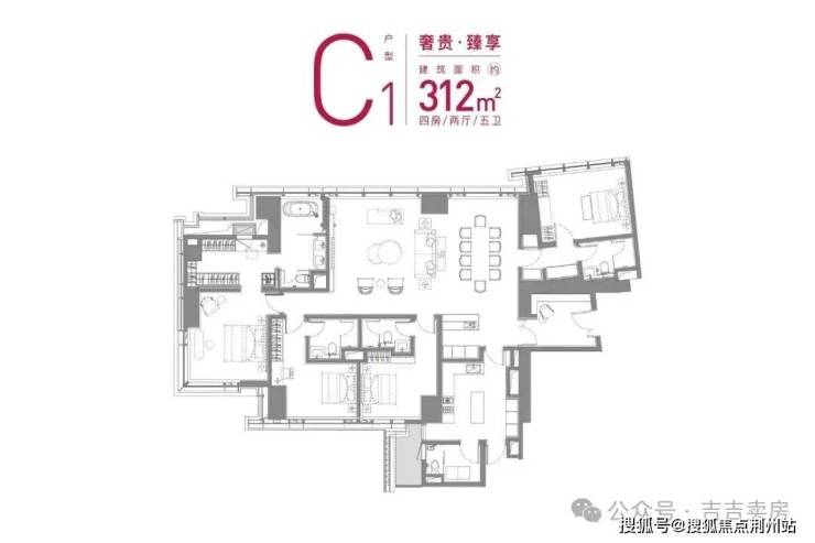 4、C1户型 建面约312㎡四房两厅五卫