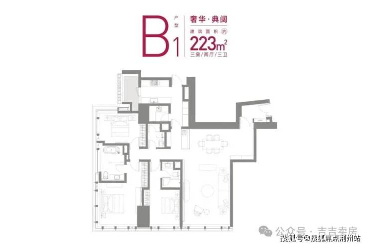 3、B1户型 建面约223㎡三房两厅三卫