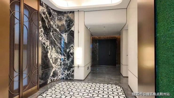 我看过的项目也不在少数。但很多项目的大堂,最常见的问题要么过度奢华、堆砌得像售楼处;要么过于功能化,像酒店后场通道。安高申陇院的入户大堂,落地语言很清晰:石材+金属+光,做出一种偏“海派摩登”的克制奢感。简单来说,就是不用复杂的造型压人,而是用材质、线条与光影做气质。
