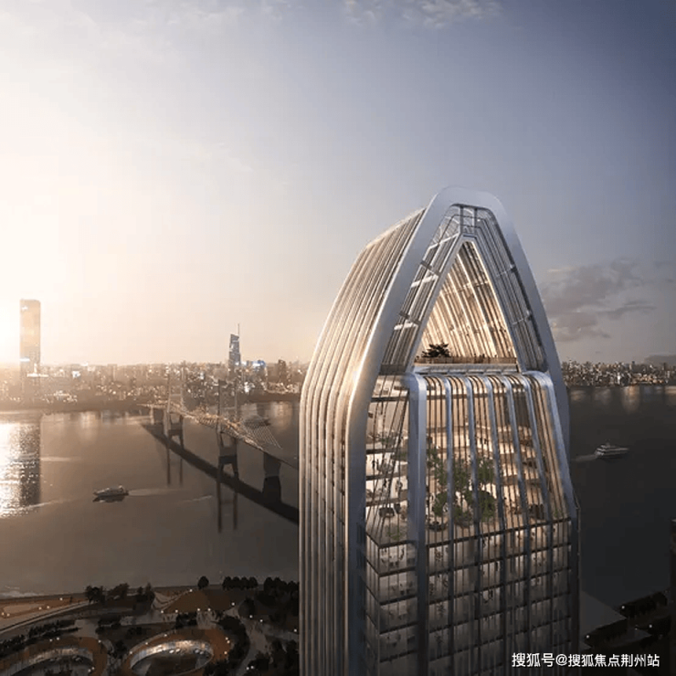 项目坐落于长江生态景观带核心区域,坐拥开阔江景资源。其设计的独到之处,在于打破武昌沿江平顶天际线的常规,以尖顶造型与透空观景空间塑造出强烈的辨识度。