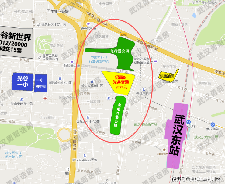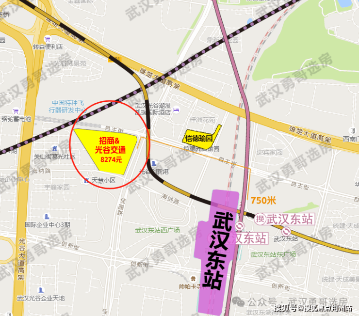 招商原颂位于光谷三环内,北侧约300多米就是雄楚大道高架,东侧到三环线约3公里,西侧到关山大道约1.5公里,斜对面就是武汉东站。