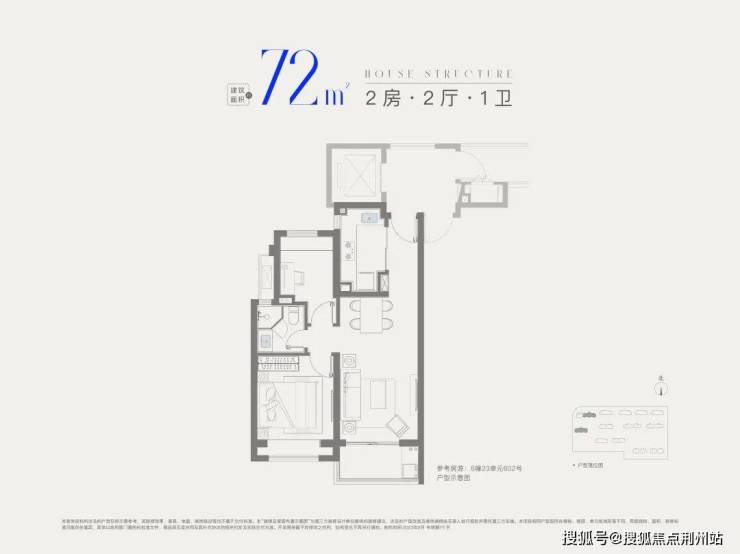 建面约72㎡2房1卫,做到双开间朝南+全卧室带飘窗,总价低至2字头,是刚需上车2房的优质之选。