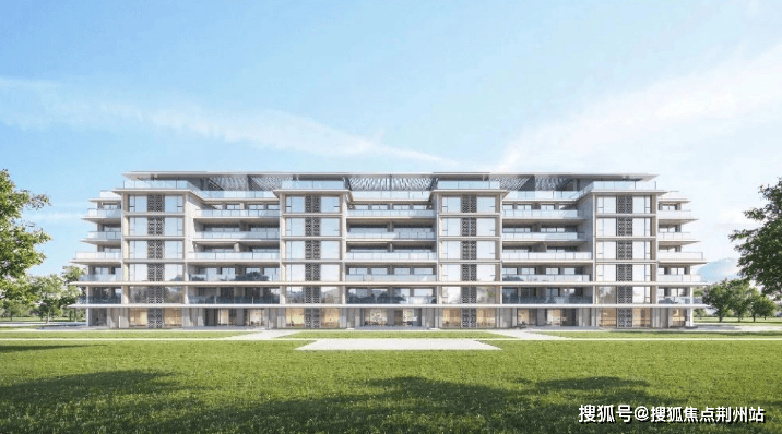 叠墅的顶冠采用披檐形态,铝板立面+香槟金的线条勾勒,呈现「现代极简」的视觉感受。