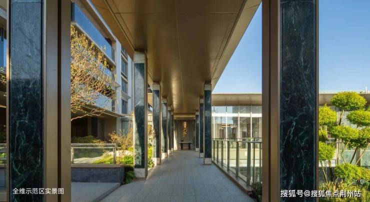 穿过以普拉达绿奢石匠心打造风雨连廊,映入眼帘的,并不是一个平铺直叙的园林,而是置入了叠山理水、石桥飞瀑的立体式园林。