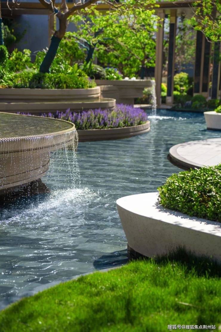 它以自然的曲线勾勒出国际流行的无边际设计,镜面水景台阶以层层退台设计消弭池岸边界,营造出如梦如幻的“悬浮之境”。