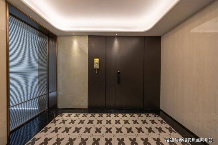 宸云的电梯厅很大,有接近12个平方的电梯厅,独门独户。比较创新的是,它把电梯厅的地面和玄关做了统一,地板颜色是一样的,这是设计上的小亮点。