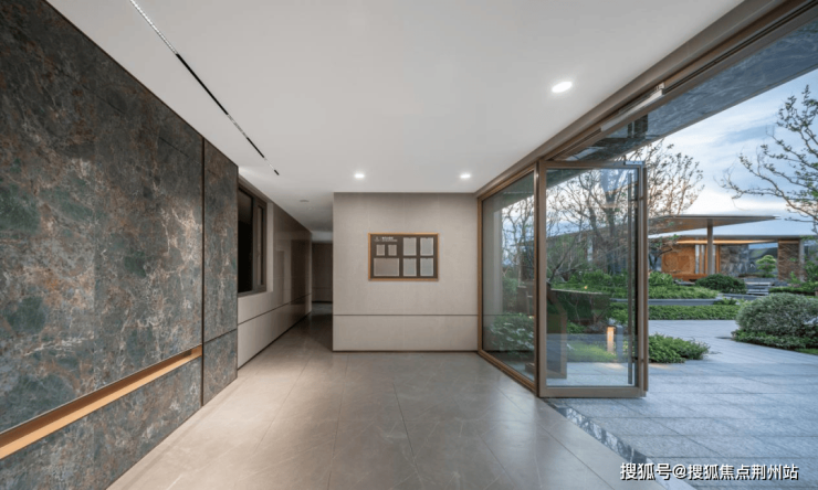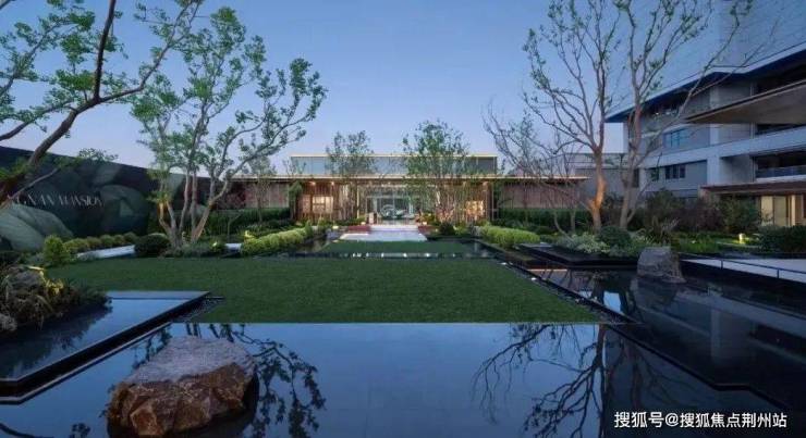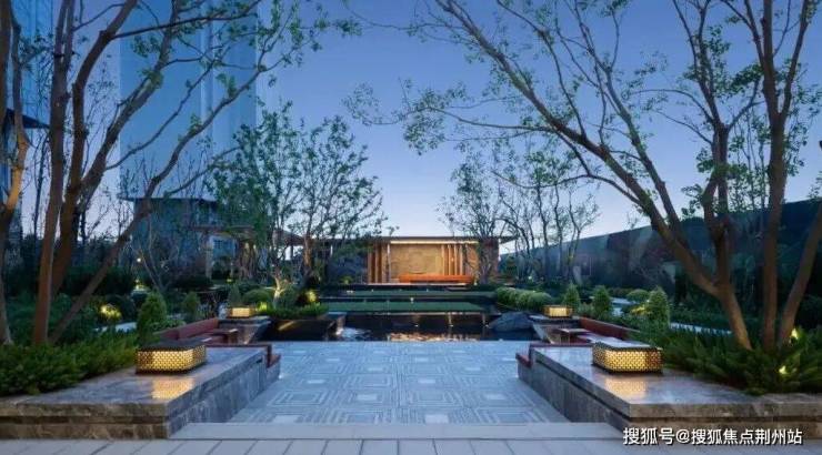 “叠水映庭树,四季皆成诗”穿过大门,“ 叠水庭院 ”映入眼帘:三层叠水顺着台阶流淌, “水为财” 的寓意藏在粼粼波光里 ,也藏着对业主财运亨通的美好期许。