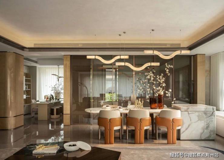 晨光中,约6.8米岛台早餐与书房咖啡香交织;夜幕下,约14.5㎡全景阳台化身星空会客厅。可变形空间设计支持“一键切换”模式——亲子游戏场、名流私宴厅、家庭图书馆自由演变,约73㎡活动空间承载N种生活想象。