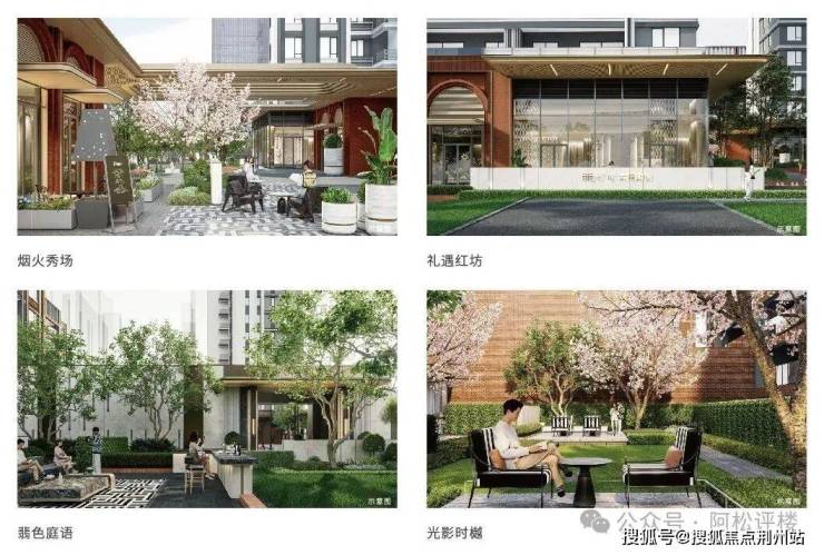 该项目以红房子商业向南延续的市井长巷为纽带,串联起小区内多个生活场景,包含烟⽕秀场、翡色庭语、童乐基地、林屿花园、闲林雅境、光影时樾等。
