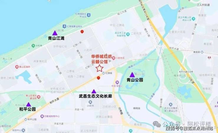 除此之外,项目西侧直线距离约100多米是青山公园,向东一站地铁可达戴家湖公园,向西一站地铁直达和平公园,向南约300米则是武昌生态文化长廊。