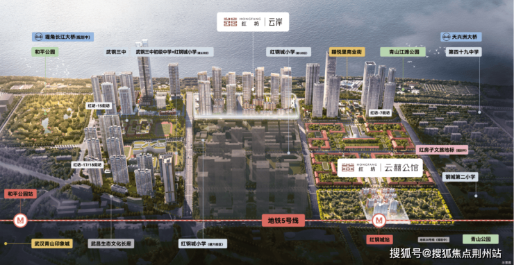通过地铁5号线可直达武昌滨江、武汉火车站、黄鹤楼及白沙洲等地,还能实现与地铁7号线、8号线以及建设中的10号线、12号线换乘。意味着将来从项目出发,通过地铁就能通达武汉三镇。