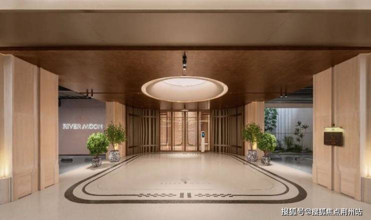 蕙澜月华的楼盘大门依然是「月华系」的标志性场景,依然是树冠造型的门庭,但它展现了更细腻的功力——当你从大门往里探看,你看到的不只是一条「规划中轴」,更是一条「透视中轴」,你隐约可以看到园区里的风姿绰约。