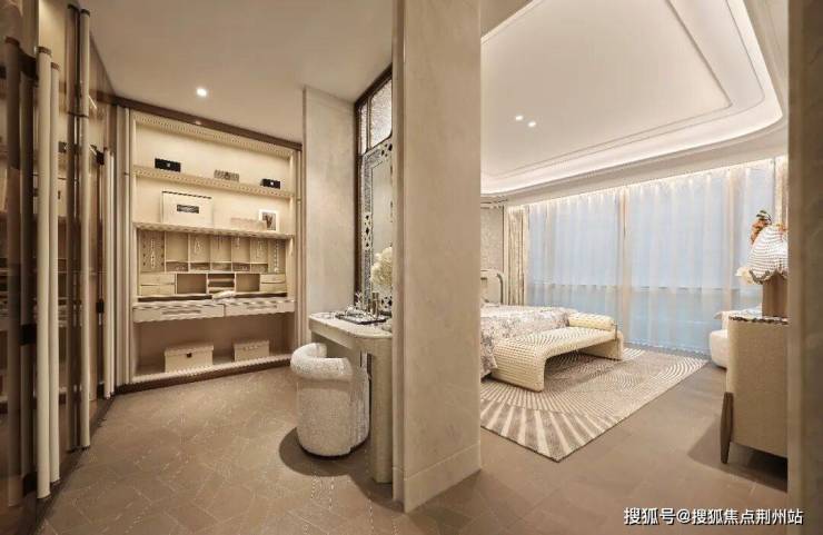 主卧套房当然要交付足够多的衣柜,做出足够美的衣帽间与化妆台,还要交付标准足够高的双台盆卫生间。