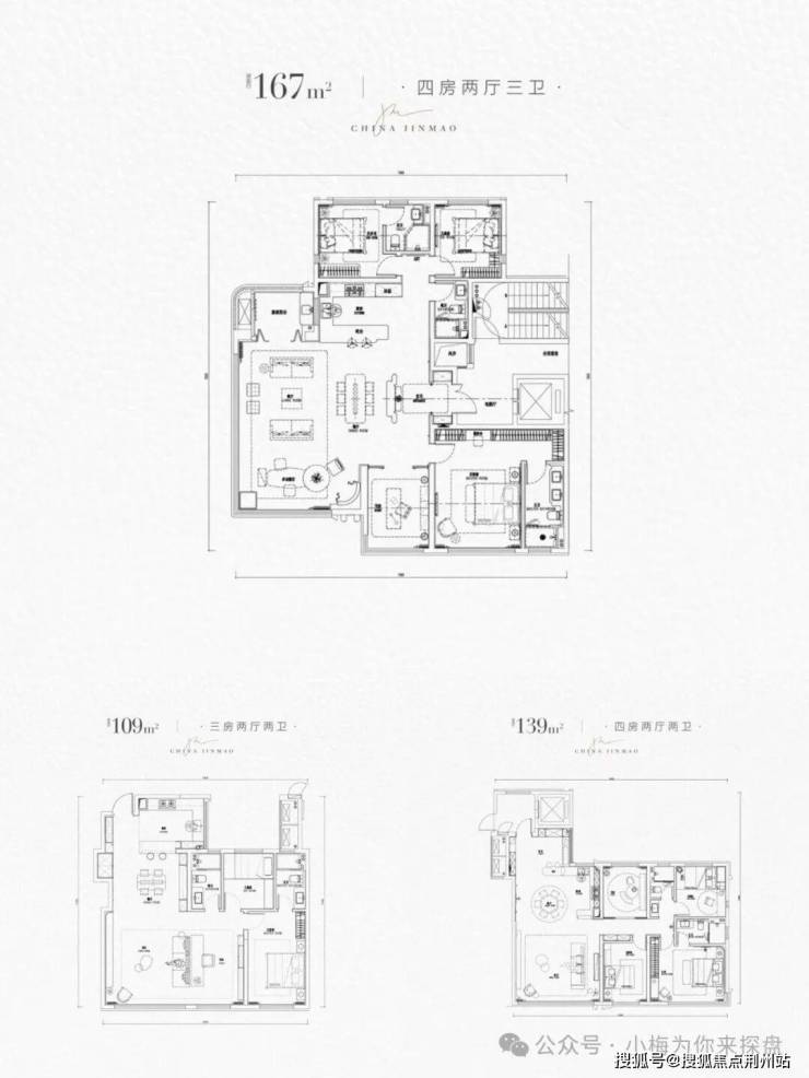 金茂·樾满晴川目前还在前期筹备中,户型面积是109,140,166三个面积段,为第四代住宅百分之百➕的得房率,层高3~3.1米。户型图如下