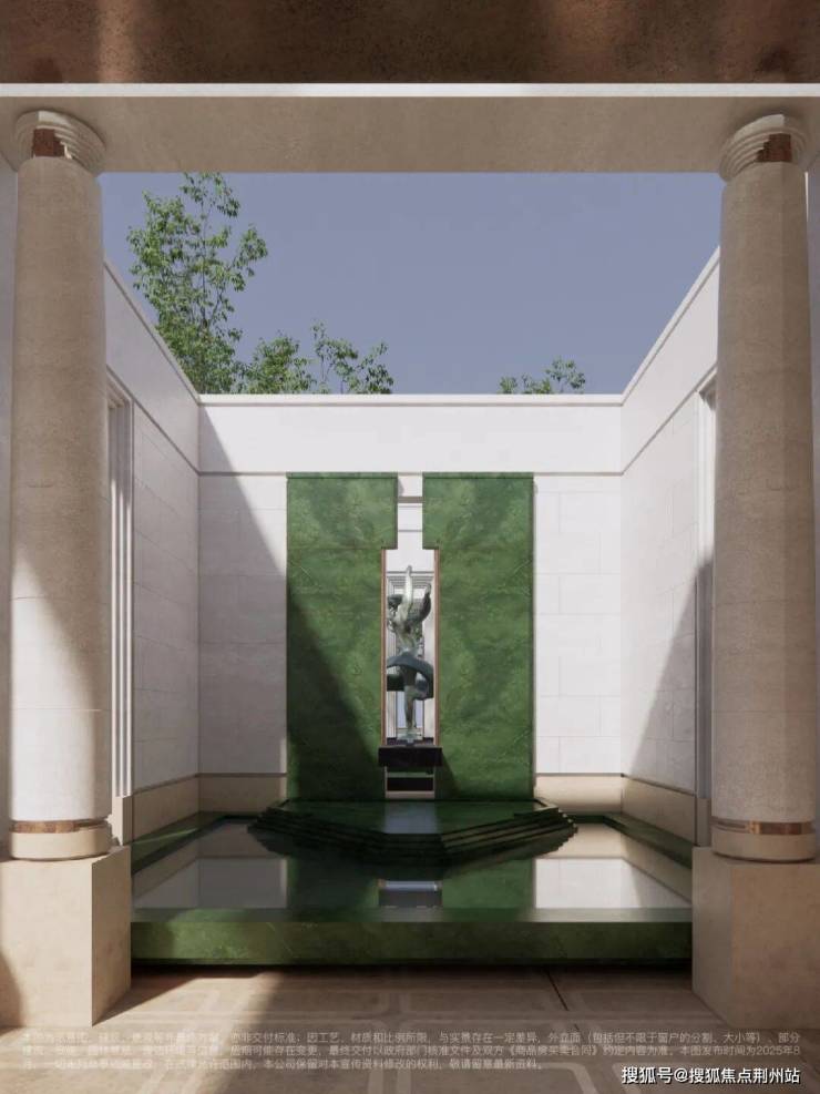 极具仪式感的归家门头,更复杂的肌理铜板吊顶、宝格绿奢石门套与定制化蚀刻纹样,通过视觉、触觉的不同感官感受,完成了归家的身份转换。