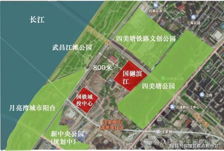 项目位于长江畔,背靠四美塘,有月亮湾城市阳台、四美塘公园、四美塘铁路文创公园、武昌江滩公园、新中央公园(规划)等五园环绕,人文生态体系景色宜人,天然城市氧吧,生态宜居。