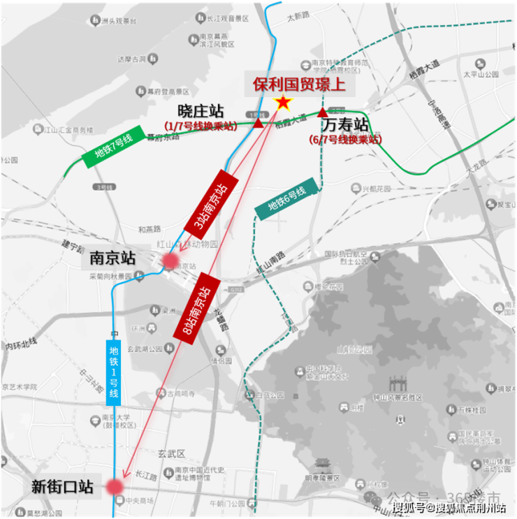 保利·国贸璟上雄踞晓庄站旁,约100米1/7号线双地铁,6站直通龙江、8站直达新街口,真正实现与城市各个核心区域的无缝对接,提高通勤效率。其次燕子矶长江隧道已经开通,作为南京非常重要的免费过江通道,现在也是联通江南、江北的重要通道。