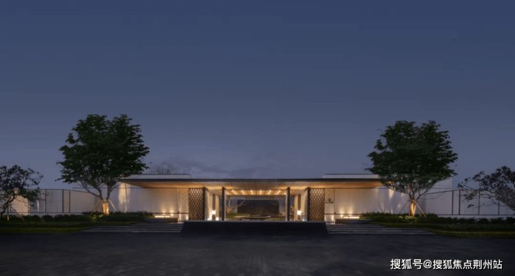 宁波·汀澜瑧悦的画境大门做得更深入。保利把沿河绿地与大门一体化设计,做了一条沉浸式的小径,直接让你漫步在「松风入亭」的画境之中:过桥、过亭、过廊,最后才进入大门。