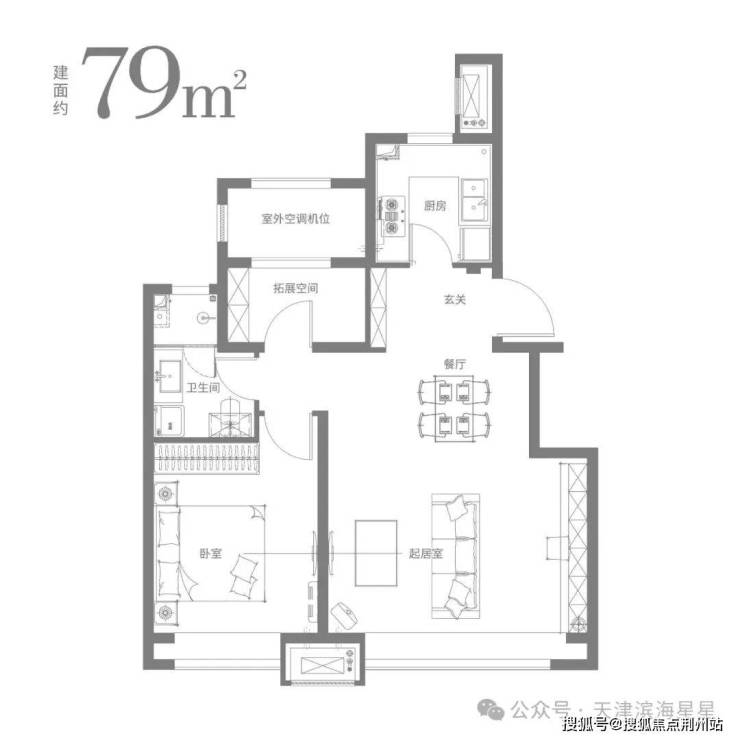 :主力户型 79-110㎡,其中 79㎡两室做到 5.1 米南向面宽,空间利用率高;95-110㎡三室采用 LDK 一体化设计,满足家庭成长需求。