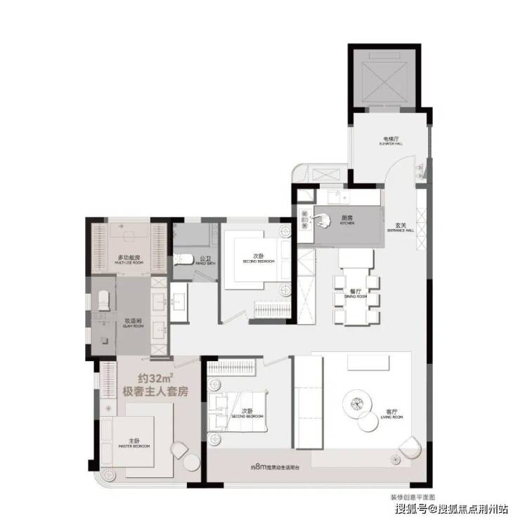 约32㎡极奢主人套房 | 酒店级妆造间+私密多功能房| 约8m宽IMAX生活阳台