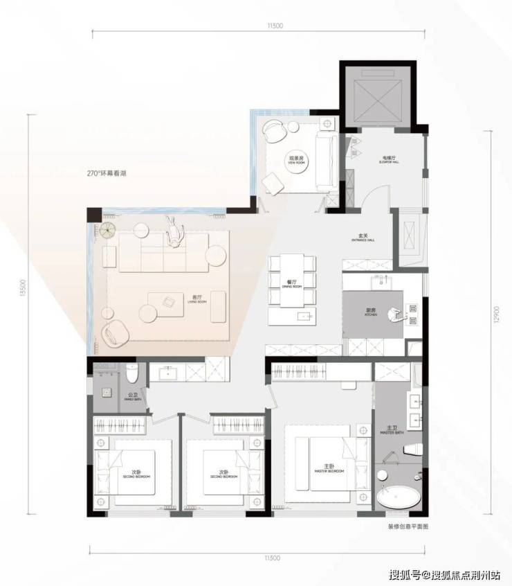 四房三卫家族奢居 | 270°横厅一线观湖 | 约28㎡奢卫主人阔套