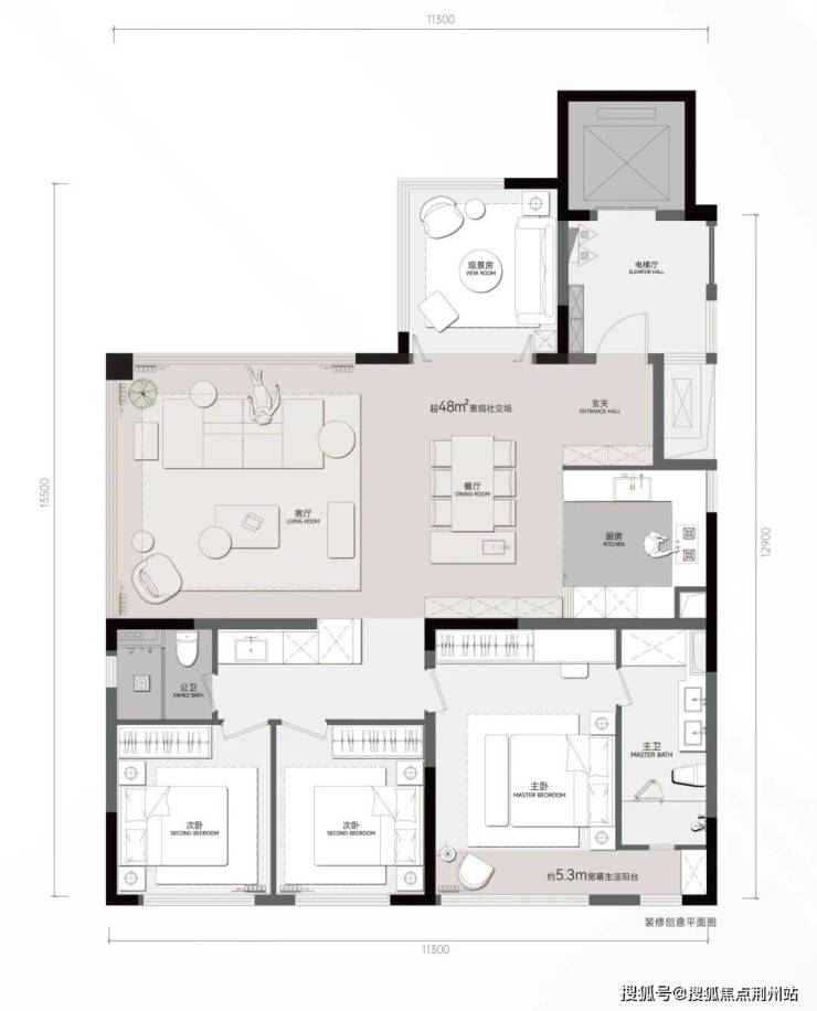 约5m横厅&大三房功能兼顾,家人从容&主人奢享兼顾