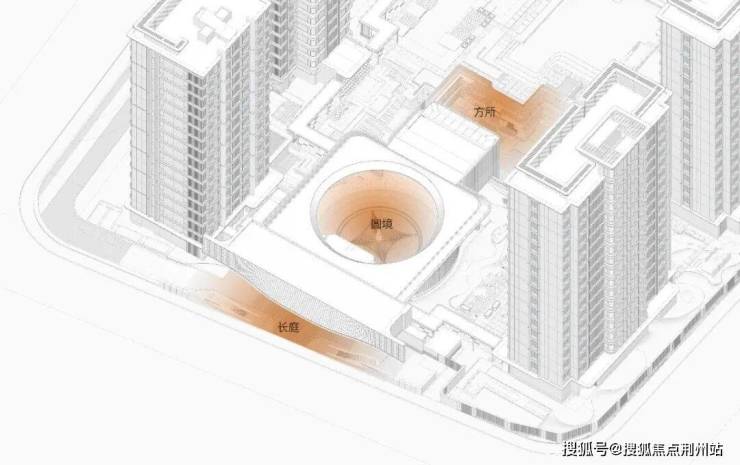示范区三重递进场景的设计,我们在空间上用了长、圆、方三种不同的庭院形态和尺度来让人在行进过程中形成独特的记忆点。