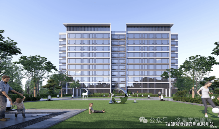 现代简洁公建化建筑立面,艺术感十足,仿古铜铝板搭配LOW-E玻璃幕,立面更加精致细腻有质感,超大窗墙比,升级视野观感体验,引领泉城人居潮向。